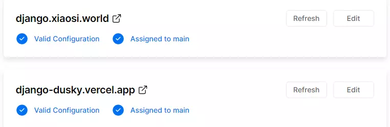 CNAME,值为cname.vercel-dns.com,TTL 为60回到项目中,等待几分钟后,即可看到绑定子域名成功