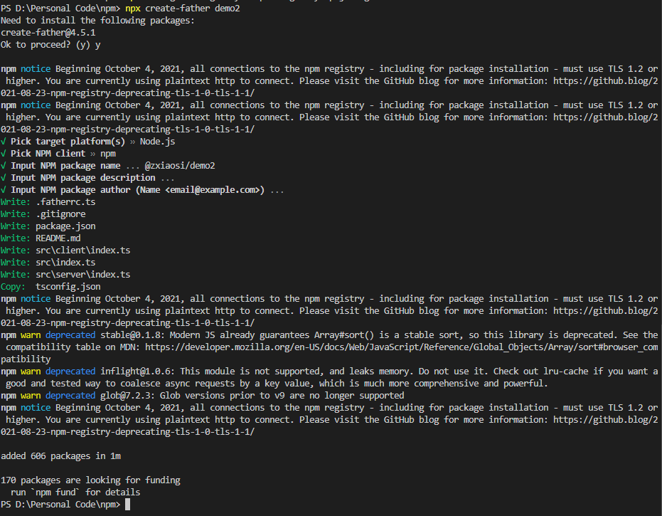 npx create-father [项目名]