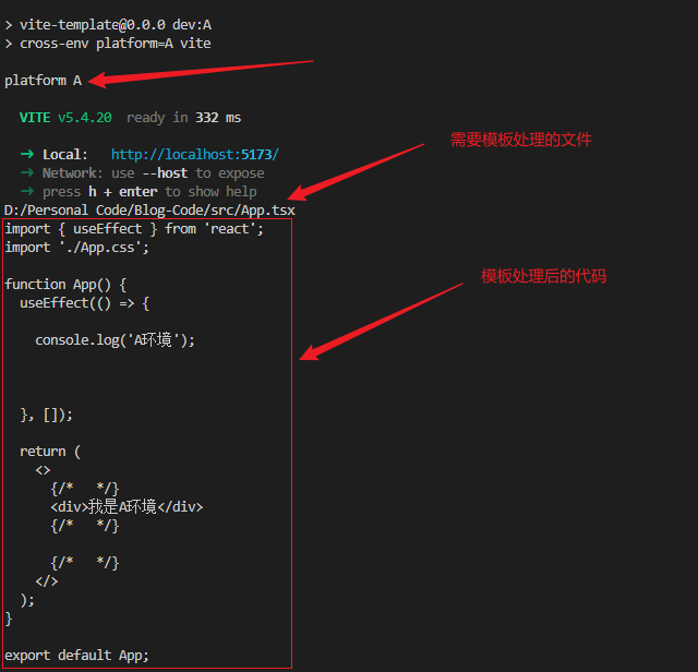 npm run dev:A或者npm run dev:B,可以在 启动窗口(终端) 中看到打印的platform变量值