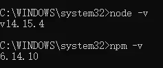 cmd命令框,执行下面代码查看node和npm版本1