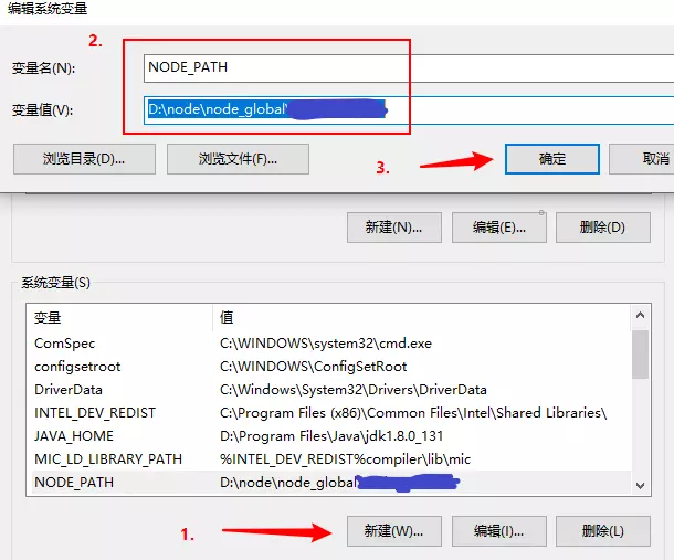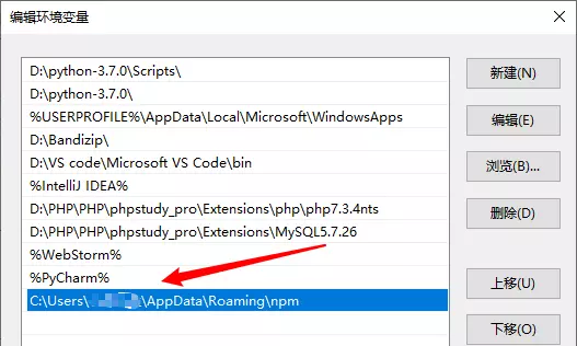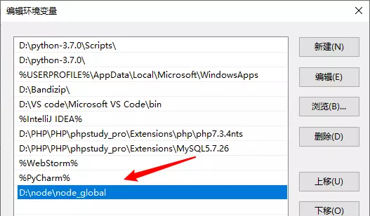 用户变量里的Path,将相应 npm 的路径改为:D:\node\node_global,如下:(npm 路径为刚刚新建node_global路径)更改前: