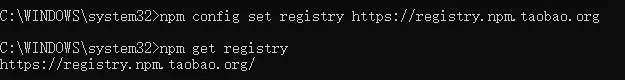 npm config set registry https://registry.npm.taobao.org