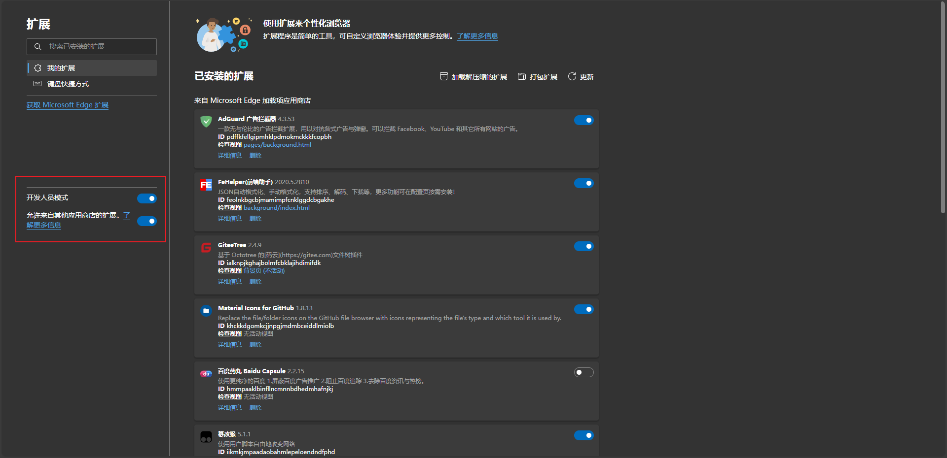 打开开发者模式