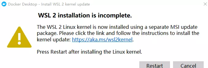 在 Docker.ApiServices.WSL2.WslShortLivedCommandResult.LogAndThrowIfUnexpectedExitCode(String prefix, ILogger log, Int32 expectedExitCode) 位置 C:\workspaces\PR-16070\src\github.com\docker\pinata\win\src\Docker.ApiServices\WSL2\WslCommand.cs:行号 146